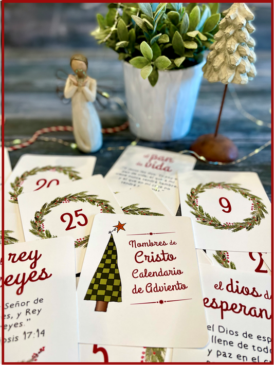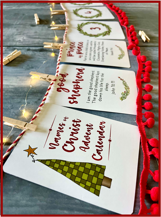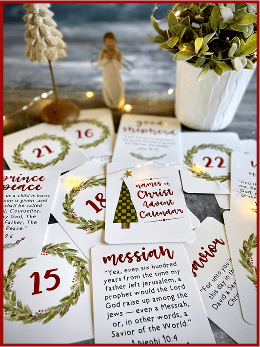 NAMES OF CHRIST ADVENT CALENDAR SET OF 26 CARDS W/PLASTIC EASEL -- BOOK OF MORMON AND BIBLE (KING JAMES)